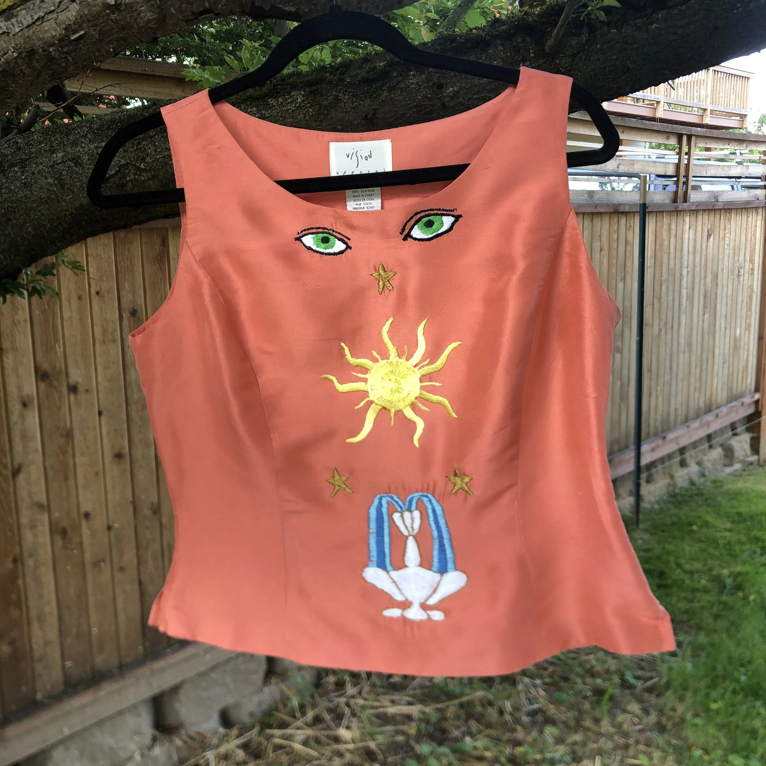 A truly upcycled garment, I think, is one that is transformed from a state of moderate disrepair into something useable and/or beautiful. In that sense, these are not true upcycles but more adornments of garments in decent quality. Free motion embroidery is apt for delicate repairs such as covering small stains or holes, and can either blend subtly or make a statement.