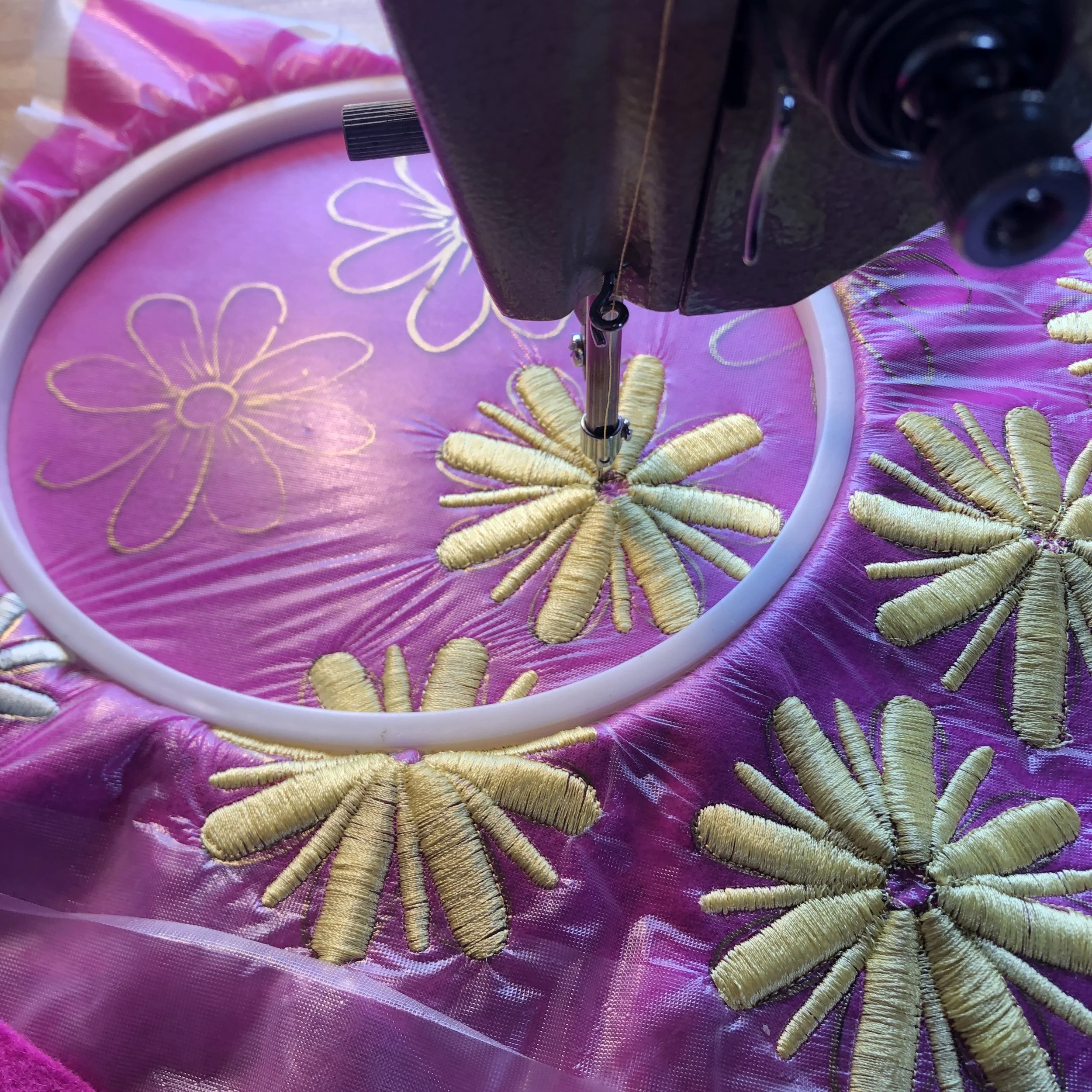 This is a technique that I first learned about thanks to artists like Ellie MacDonald (URL) and Rosie Brain (URL), both trained in free motion embroidery on a specialized industrial machine called an Irish Singer. There are some incredible vocational programs in the UK and EU for this specific skill, but it is very difficult to even learn about it in the US. I spent hours researching industrial sewing machines, even taking a workshop from Portland Apparel Labs on using industrial machines, until I finally felt confident to try it out.